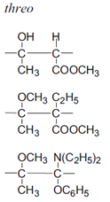 Relative configurations at two contiguous carbon atoms in main chains bearing, respect- ively, substituents a and b (a ≠ b), are designated by the prefix erythro or threo, as appropriate, by analogy with the terminology for carbohydrate systems in which the substituents are –OH.