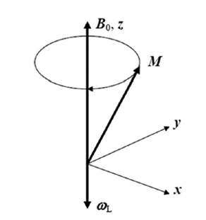 ობიექტის მაგნიტური მომენტის (M) პრეცესია კუთხური სიხშირით (ωL) გარე მაგნიტური ინდუქციის (B0) მიმართ. იხილეთ ნახ..