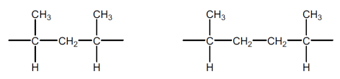 When it is necessary to specify the internal stereochemistry of the group, a prefix is required. In vinyl polymers there are meso (m) and racemic (r) diads and mm, mr, rr triads. The latter may be called isotactic, heterotactic and syndiotactic triads, respectively. Stereoregular vinyl polymers can be defined in terms of the regular sequences of diads; thus an isotactic vinyl polymer consists entirely of m diads, i.e., it corresponds to the following succession of relative configuration -mmmmmm-, whereas a syndiotactic vinyl polymer consists entirely of r diads, corresponding to the sequence –rrrrrrr-. Similarly, a vinyl polymer consisting entirely of mr (= rm) triads is called a heterotactic polymer. |