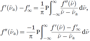 Functions that interrelate the real part, f′, and imaginary part, f″, of the refractive index,