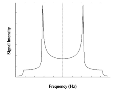 Characteristic line shape seen in solid-state nuclear magnetic resonance spectroscopy arising from dipolar coupling between two nuclei. Figure. Pake doublet. Reproduced with permission from IUPAC and De Gruyter, Copyright 2021. |