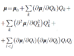 დიპოლის ვექტორული სიდიდე, რომელსაც ელექტრულ ველში (E) აქვს პოტენციური ენერგია Ep=-p · E შენიშვნა 1: დიპოლური მომენტი მიმართულია უარყოფითი მუხტიდან დადებითი მუხტისკენ. შენიშვნა 2: ელექტრული დიპოლური მომენტი ასევე უდრის საპირისპირო ნიშნის მქონე განცალკავებული თანაბარი მუხტების სიდიდის ნამრავლს მათ შორის მანძილზე. ის, როგორც წესი, ჩაიწერება შემდეგნაირად: უფრო მაღალი რიგის წევრები, სადაც Qk და ა. შ. არის ნორმალური კოორდინატები, ხოლო μo არის მოლეკულის წონასწორობის დიპოლური მომენტი. შენიშვნა 3: SI ერთეულია კულ . მ, მიღებული ერთეულია დებაი, 1 დებაი ≈ 3.33564 x 10-30 კულ . მ. |