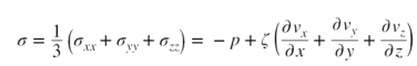 | A quantity ζ which enters into equations at any point where the flow involves a change in volume, i.e. is dilatational. If the deformation is purely dilatational, the average of three normal stress components is: